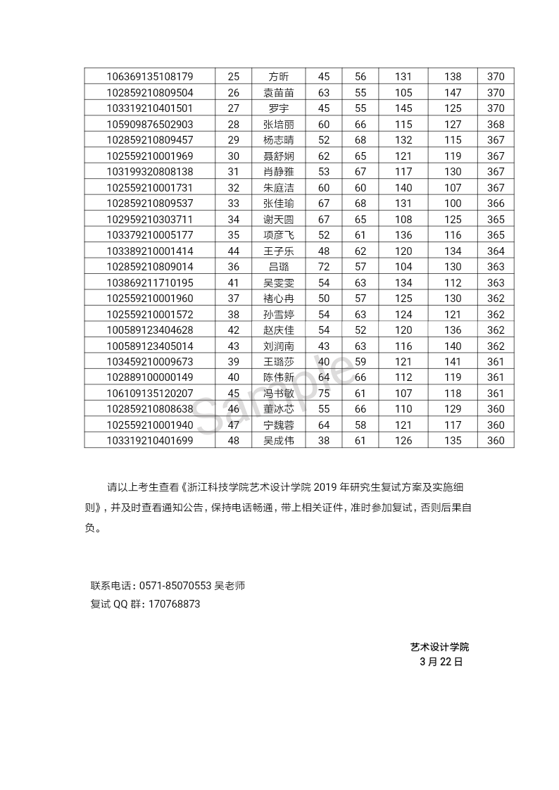 2019年浙江科技学院艺术学院研究生复试名单 0324.xlsx