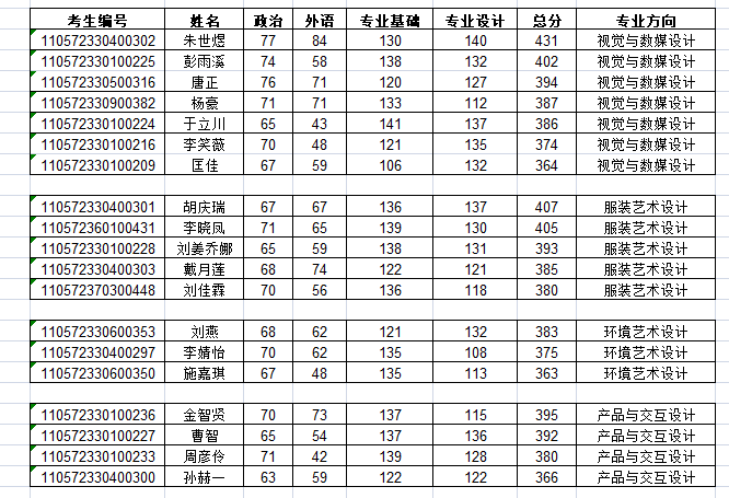 浙江科技学院艺术设计学院2022年硕士研究生招生复试名单(135100艺术一志愿)