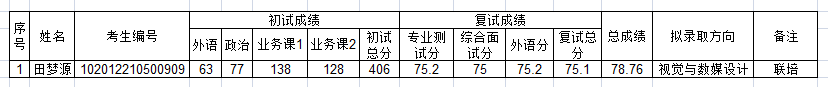 备注:复试成绩=综合面试×50%+专业课测试×30%+外语听力及口语面试×20% 总成绩=(初试成绩/5)×60%+复试成绩×40%