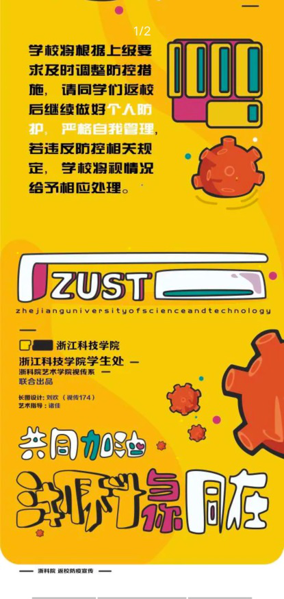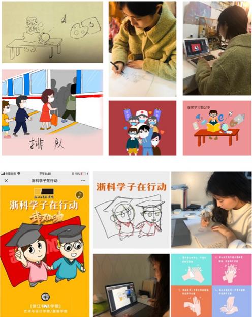 深抓防护科普,宣传防控知识。为进一步增强浙科学子防疫意识,宣传防疫知识,212日,支部叶玲红老师联合了温岭市文明办,组织指导学生制作了“防疫”宣传H5——《和小文小卫一起学文明好习惯》。在H5中,“小文”是文明人的代表,“小卫”是卫生城的代表,这是叶玲红老师和同学们多次视频会议商讨定下来的吉祥物形象。在此基础上,叶老师迅速组织创作系列插画用于H5的制作,用动态的“语图互文”达到宣传生动形象、一目了然的目的。小文和小卫的宣传形象得到了许多人的喜欢,宣传防疫知识取得突出成绩,为进一步加大宣传力度,219日,叶老师再次带队,带领研究生为学校制作了“浙科学子在行动”宣传H5,主要针对同学们每日必做的打卡、个人防护等防控措施进行知识宣传,提高疫情防控意识,让防疫知识普及到每一位浙科学子。