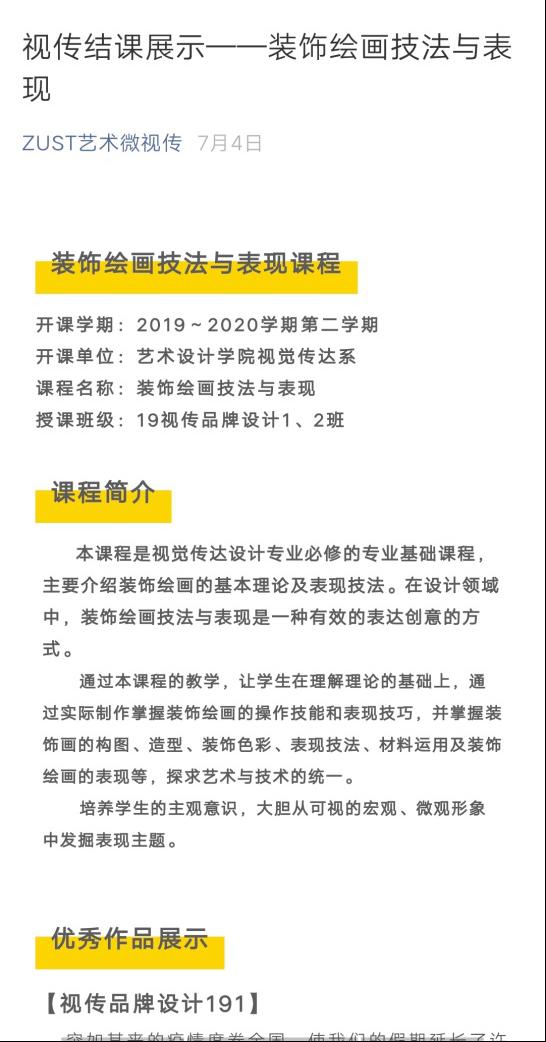 8  19级品牌设计12班的《装饰绘画技法与表现》课程推文及部分作品