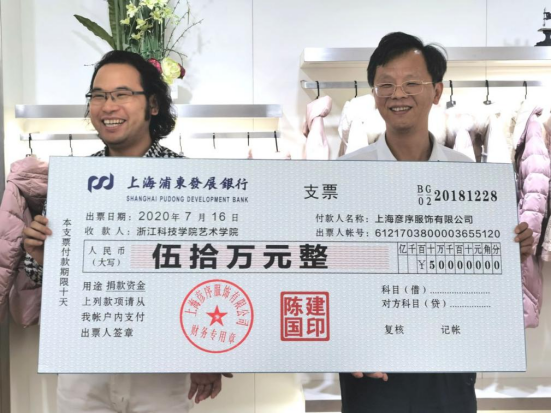 陈建国校友系艺术学院2001届服装设计专业毕业生,毕业后创办了上海田仓纺织服装有限公司、上海彦序服饰有限公司、上海道悟设计有限公司等多家公司;陈建国校友积极投身公益事业,曾向多个社会组织捐资助学,2020年向母校捐助教育发展基金50万元整。