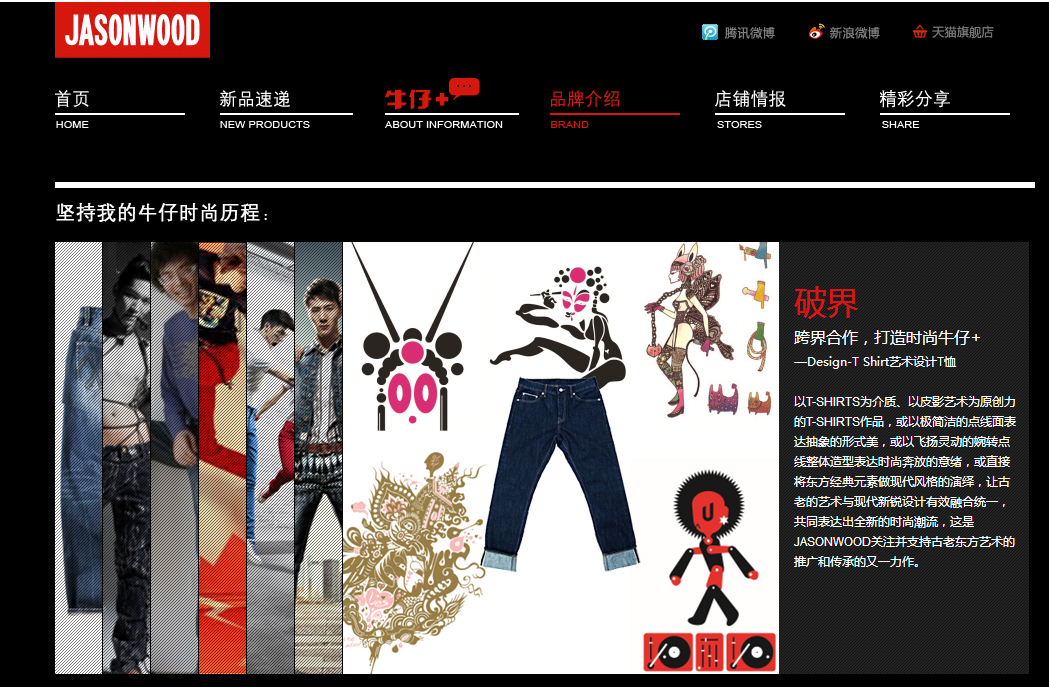 JASONWOOD坚持我的服饰(杭州)股份有限公司,创办于2000年,是中国牛仔第一品牌,专注牛仔服饰近20年,牛仔JASONWOOD核心消费群是想用牛仔展现自己独特魅力的都市年轻人,在服装消费上注重追求个性、强调品质、时尚不另类、喜新不厌旧,目前JASONWOOD品牌已经拥有直营/代理店铺逾400多家,渠道覆盖百货店,专卖店,Shopping Mall,官方购物网站等多种形式,覆盖全国26个省份123个大中城市。