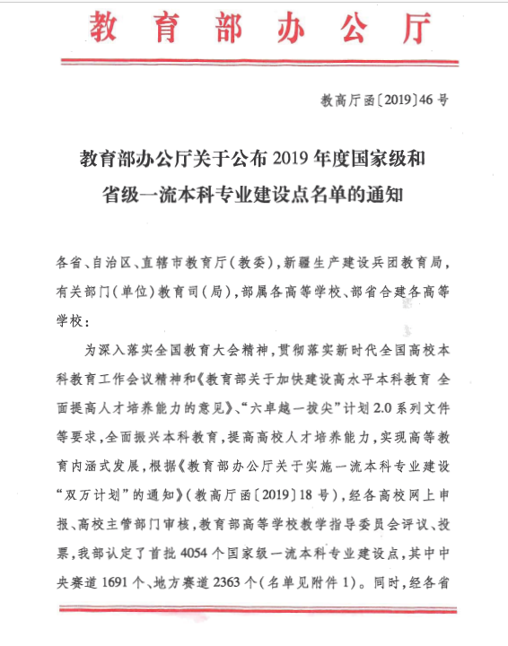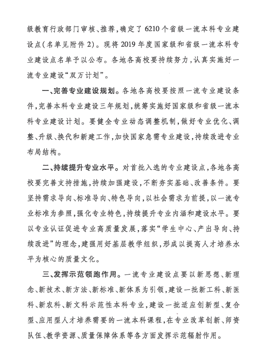 教育部2019年4月起实施一流本科专业建设“双万计划”,将在2019—2021年建设10000个左右国家级一流本科专业点和10000个左右省级一流本科专业点。2019年,教育部共认定首批4054个国家级一流本科专业建设点(其中中央赛道1691个、地方赛道2363个),确定6210个省级一流本科专业建设点。