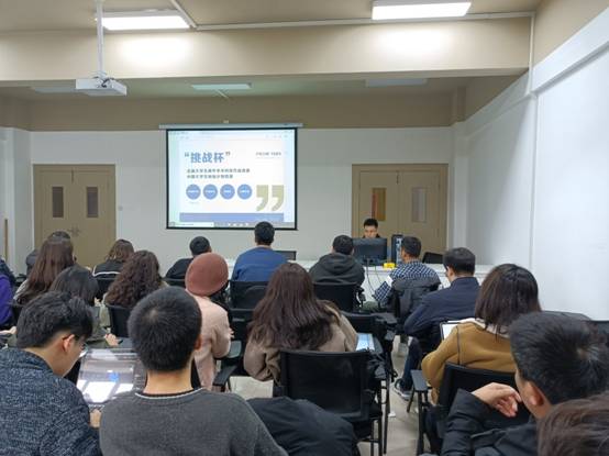 活动最后孙华锋同学介绍关于“挑战杯”与“互联网+”的相似性与区别之处,展开介绍关于“挑战杯”参赛的具体内容和注意事项,如关注重点、赛道选择、人员构成,项目可实现性等等问题,并分享了“新苗计划”部分内容和项目案例的形式供同学们参考与借鉴。