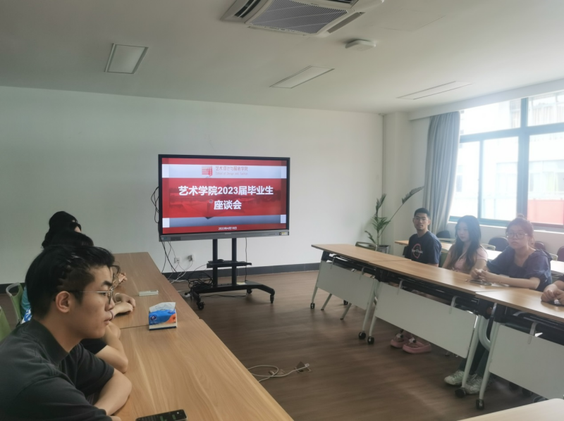 优秀毕业生座谈会于B4-303举行。艺术学院党委书记詹俊、副院长宋眉、学工办主任李楠以及本科生、研究生代表参加座谈会。
