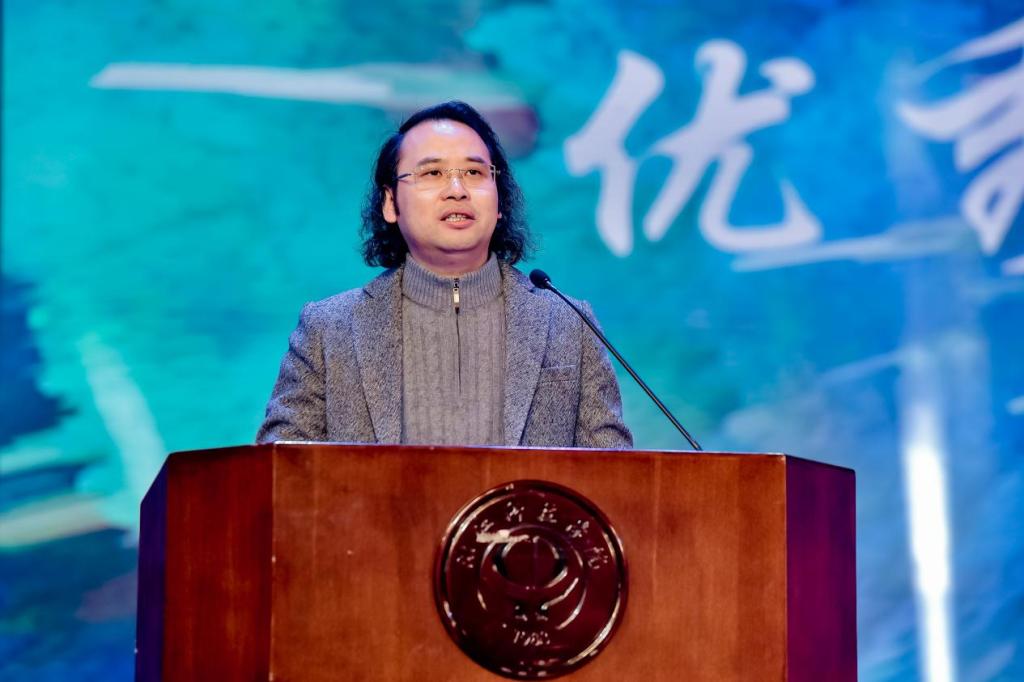 01届优秀校友陈建国上台为晚会致辞,对母校顺利实现大学梦表示热烈的祝贺,他希望全体艺术学子牢记校训,不负青春,不负韶华,勇毅前行,开启自己大学生活的灿烂篇章。