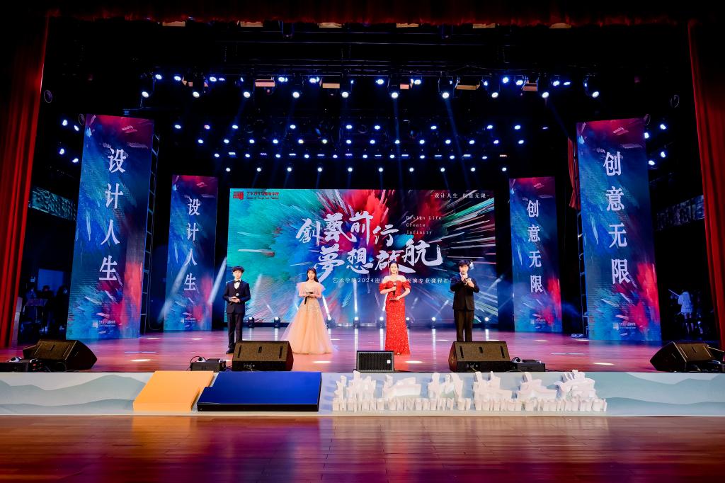 设计人生,创意无限。12月26日晚,艺术学院2024迎新晚会暨表演专业课程汇报展示在水晶剧院隆重举行。本次晚会以“创艺前行 梦想起航 ”为主题,立足学院特色,旨在展现艺术学院的专业内涵和师生风采。出席本次晚会的领导和嘉宾有:校团委书记戈洪伟,校学工部副部长、学生处副处长王登科,艺术学院党委书记詹俊,艺术学院副院长宋眉,01届优秀校友陈建国,各位系主任,党支部书记,他们与艺术学院师生们共同观看本次演出。