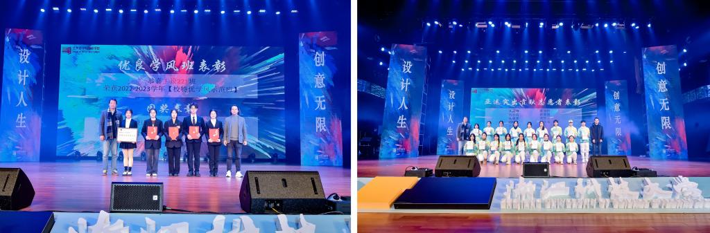 晚会现场还对校首届低碳设计创新一等奖、亚运突出贡献志愿者、优良学风班、国奖获得者进行了表彰。
