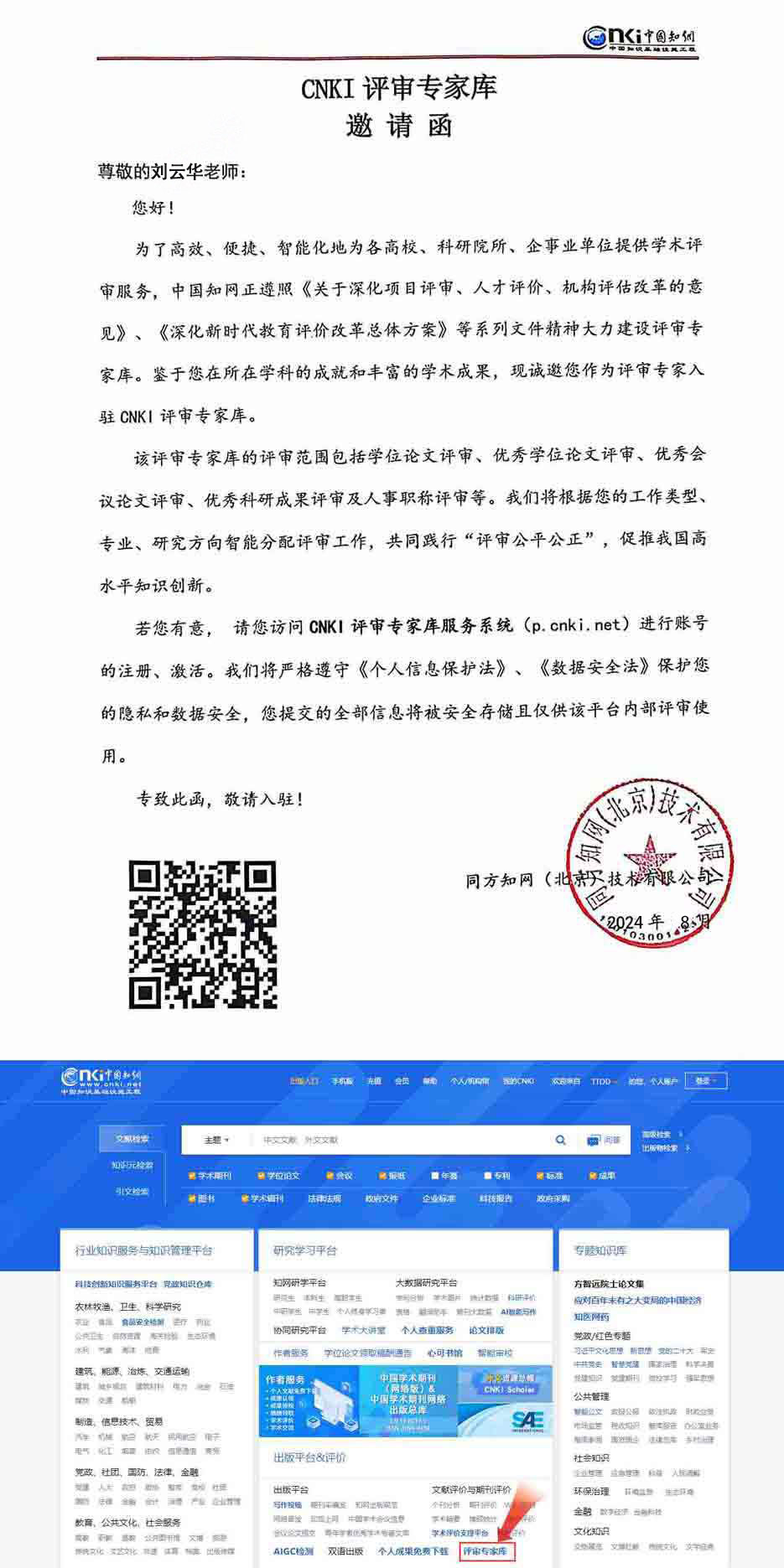 近期, CNKI(中国知网)科研评价事业部依据CNKI(中国知网)专家库评审专家的工作类型、学科专业、研究方向等相关方面的具体情况,特邀请刘云华教授担任CNKI评审专家,评审内容涉及学位论文、优秀学位论文、优秀会议论文、科研成果、人事资料(职称材料)等方面。
