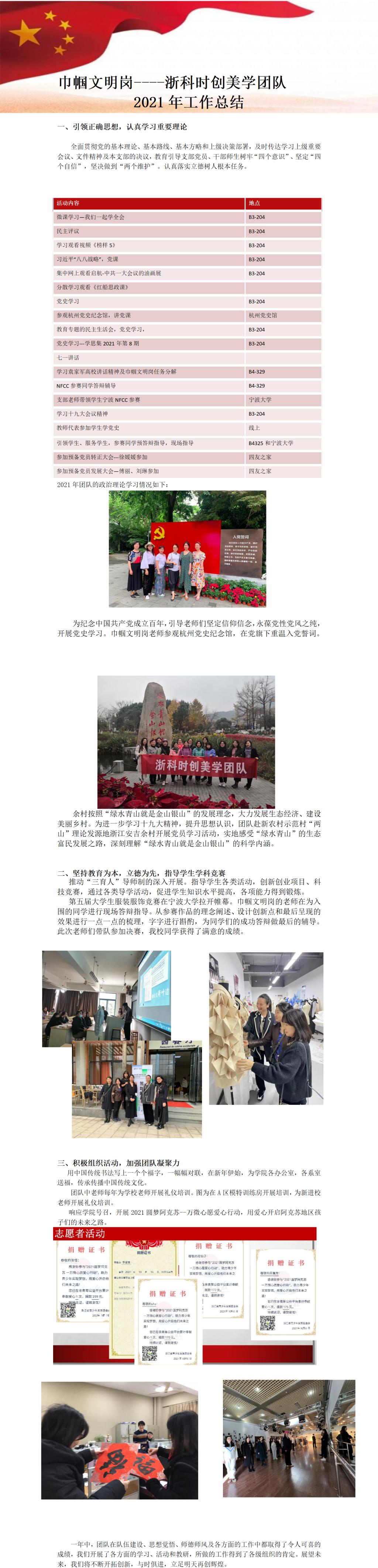 巾帼文明岗----浙科时创美学团队 2021年工作总结
